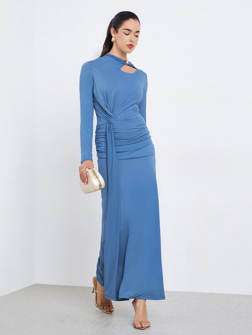 فستان طويل ضيق بياقة غير متماثلة