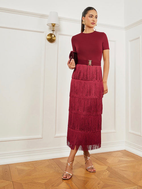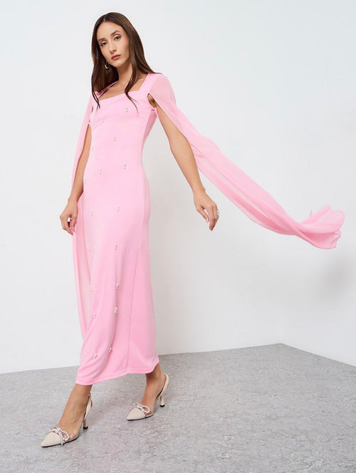 فستان طويل مزين باكمام منسدلة